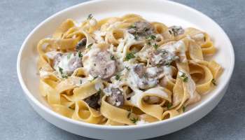 Fresh pasta tossed with porcini mushrooms in a garlic and olive oil sauce, offering a balance of carbs and nutrients for recovery.